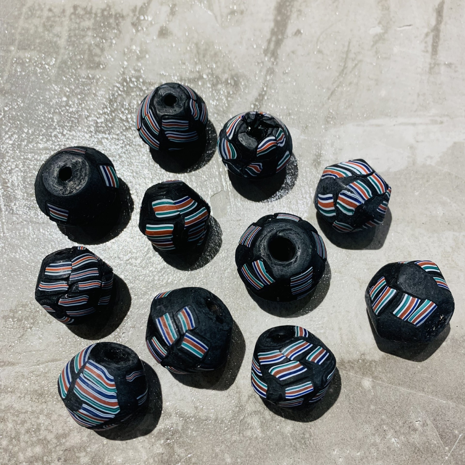 輸入ネパールの古い瑠璃の色の模様の黒色のこまの形の玉の散珠の大きい穴のdiyのブレスレットのネックレスの部品を輸入します。