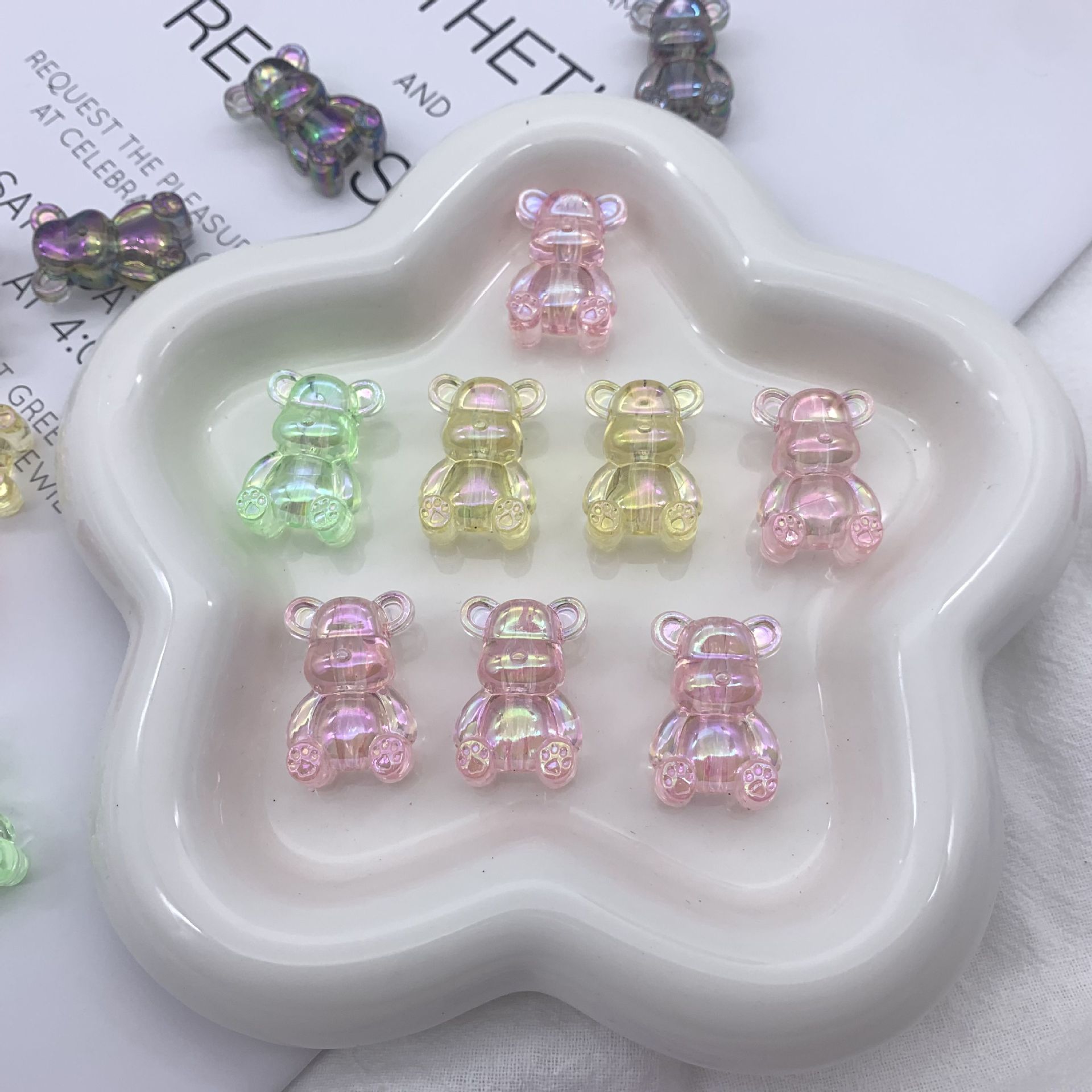 アクリル透明カラー熊形ビーズは手串シリーズの指輪DIY各種アクセサリーを作ることができる