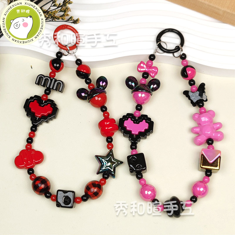 スウィートギャルy2kドーパミンペンダントブレスレットカラーベアビーズチェーンdiyストラップ人形チェーンアクセサリーチェーン