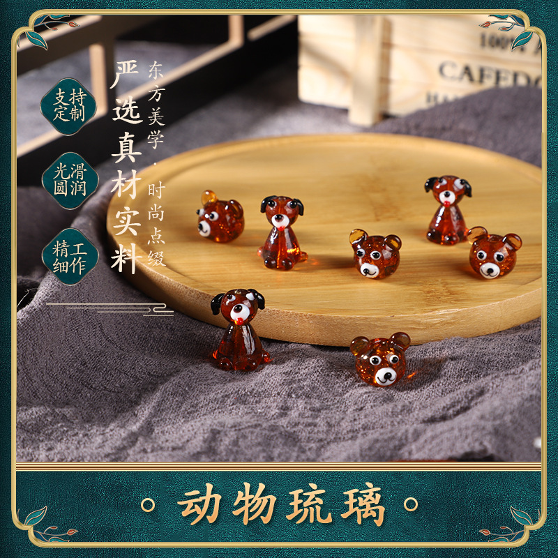 動物瑠璃逸品動物頭手作り材料kt猫熊カニ瑠璃ビーズ直孔動物瑠璃珠