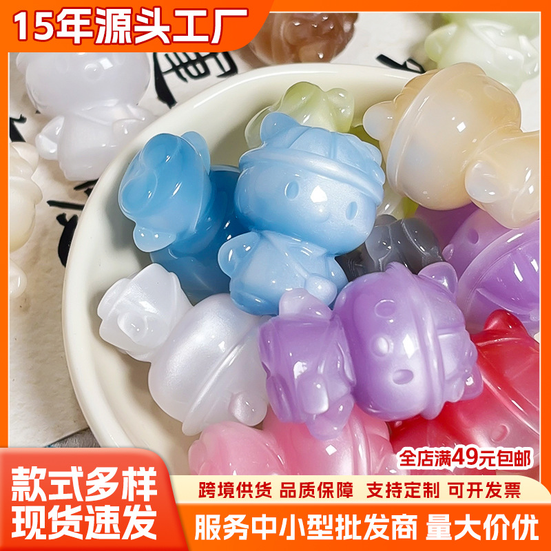 Douyin 人気の細かく彫られたキャッツアイストーンハローキティルースビーズ手作り diy 携帯電話チェーン車吊りビーズジュエリー材料