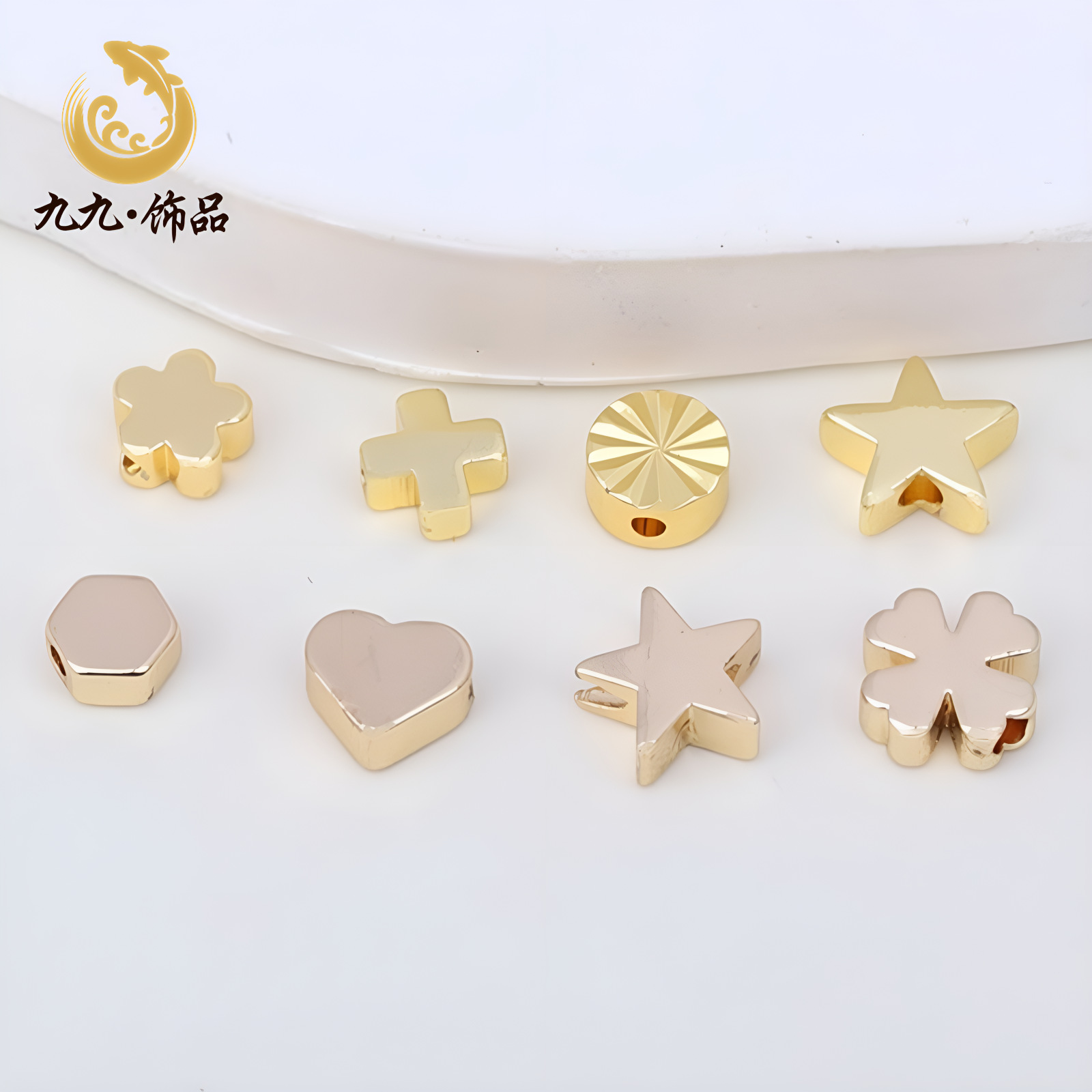 14K包みの金の保色のビーズの小さい花のビーズの王冠の熊の四つ叶のクローバーの穴のビーズdiyの手作りのビーズの材料