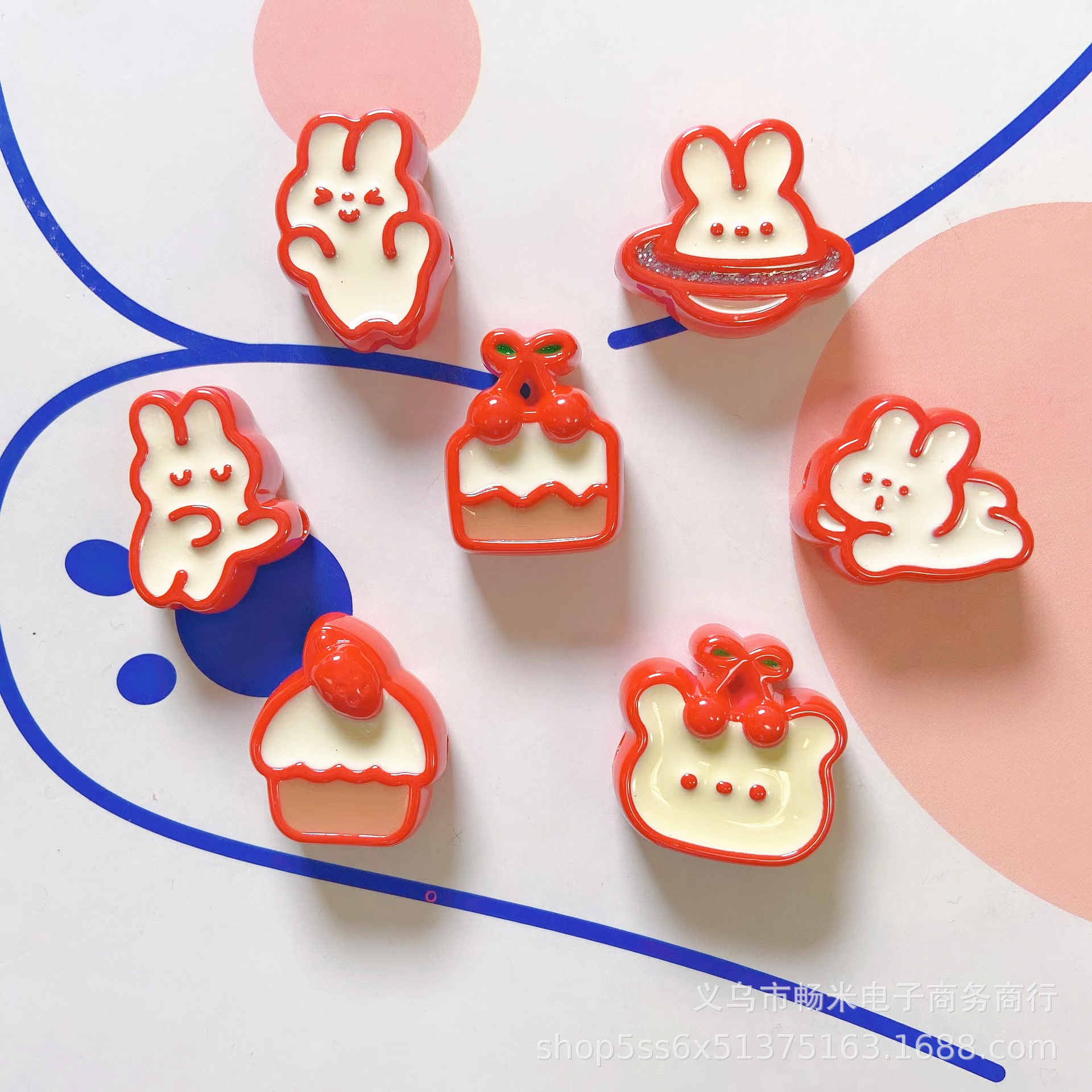 新年のアクリル油のウサギの熊のデザートの漫画のまっすぐな穴のdiyのキーホルダーの携帯電話のチェーンの材料の数珠
