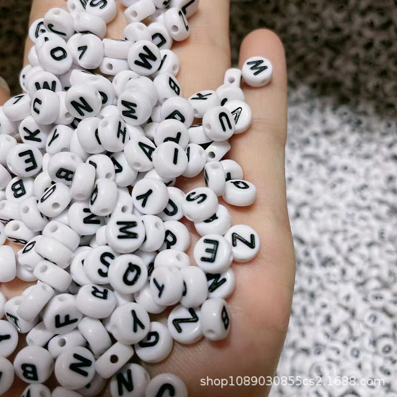 子供diy手作りビーズアクリル平円アルファベットビーズカラー英語アルファベットビーズ4*7mm