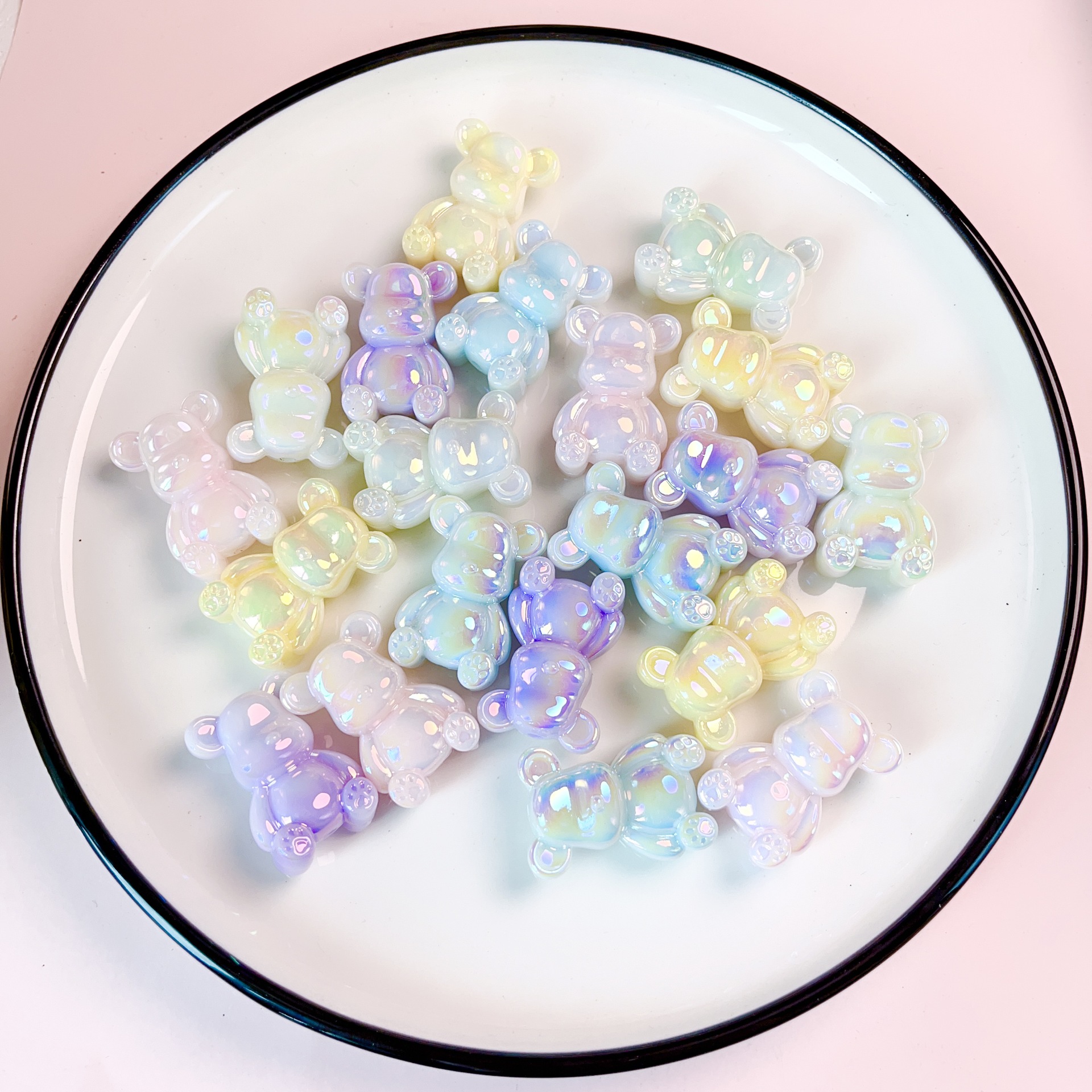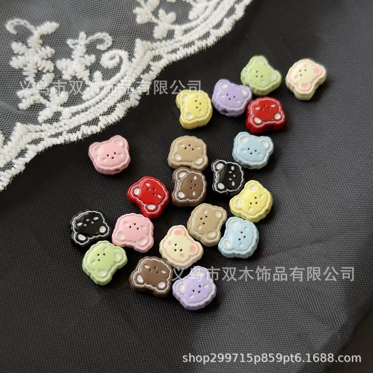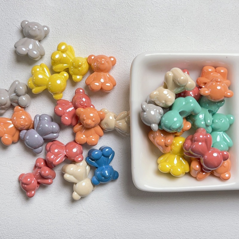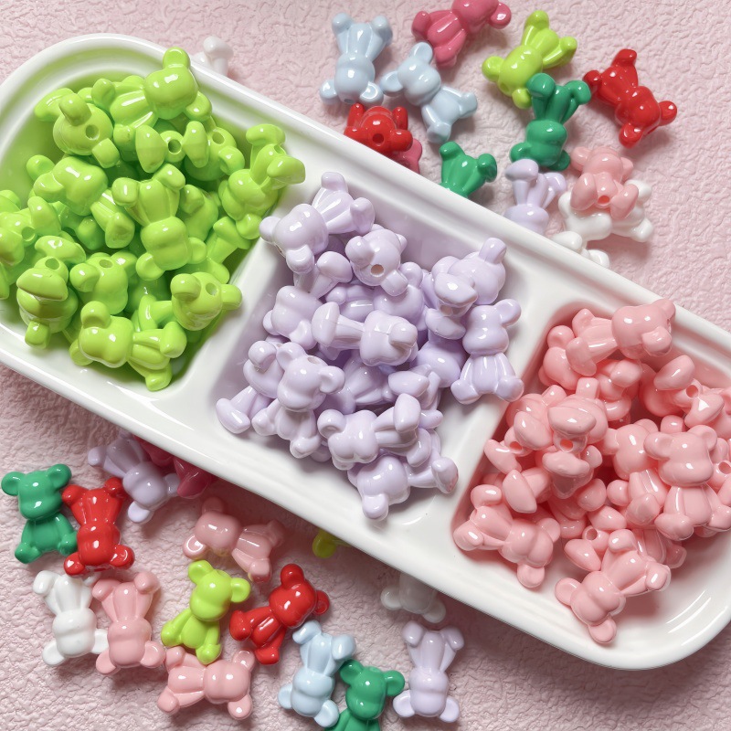 ドーパミンカラー塗装ベアー直孔アクリルビーズdiy携帯チェーンキーホルダー材料アクセサリー部品