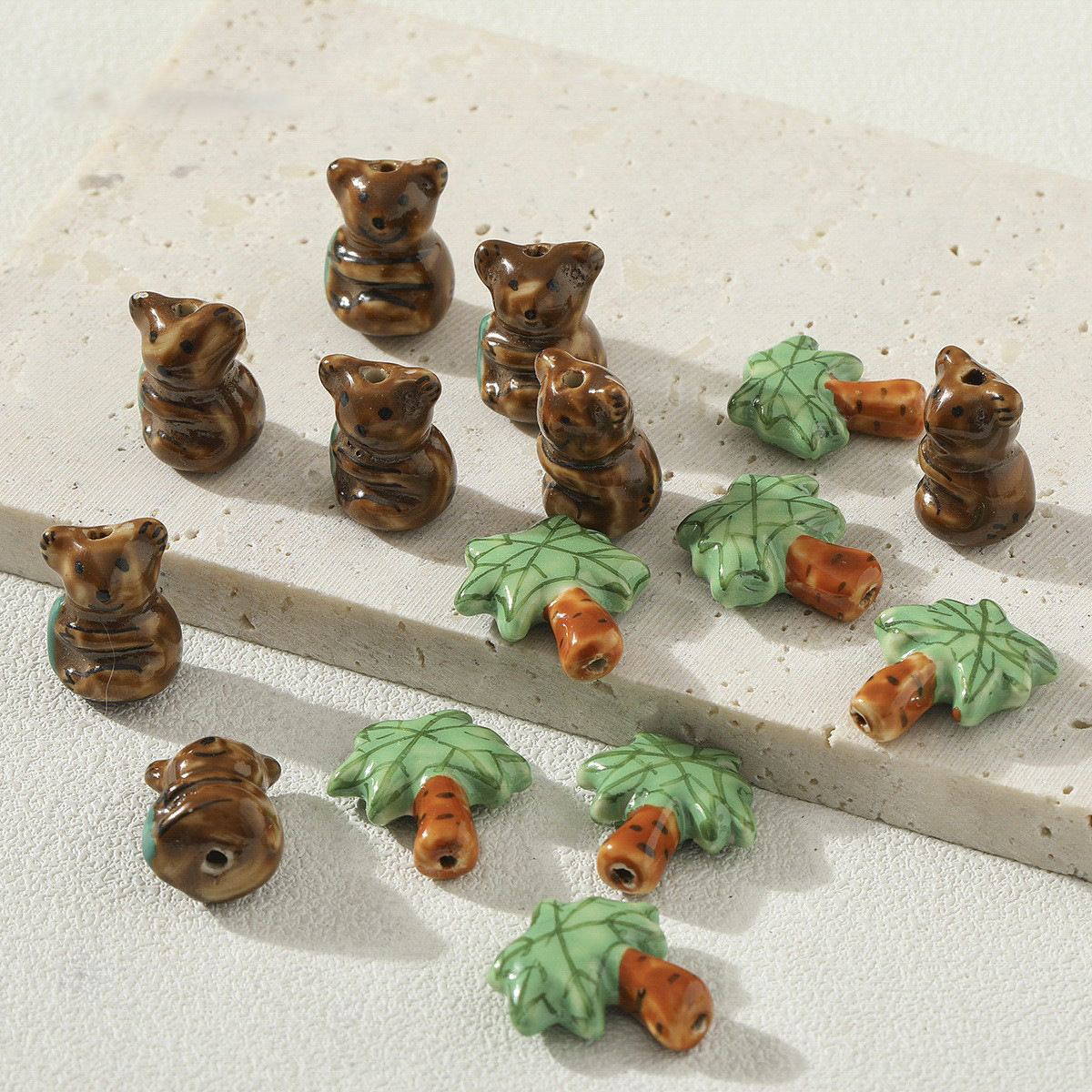 かわいい日系ヤシの木熊手描き陶磁器珠散珠ビーズ手作りdiy部品ブレスレットイヤリングペンダント