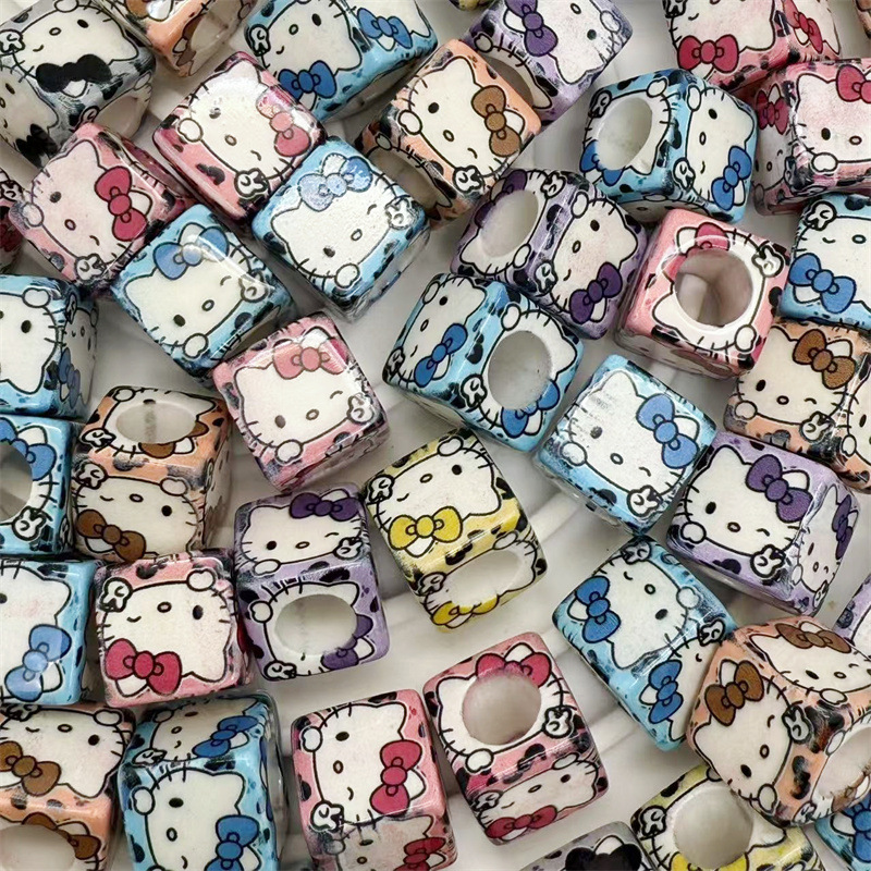 14 ミリメートルアクリルプリント漫画 kt 猫スクエアビーズ大穴ビーズ DIY 携帯電話チェーンバッグぶら下げヘアロープジュエリーアクセサリー