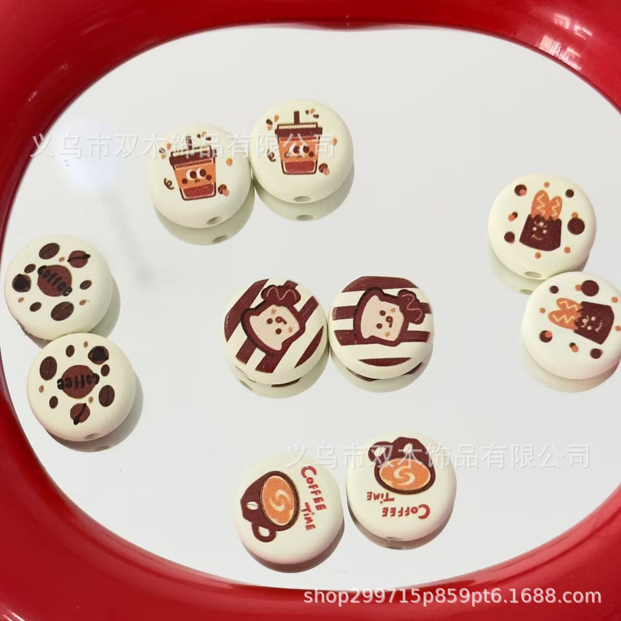 Diyアクセサリーアクセサリー手涂り印刷食游びラウンドビーズ子供の髪饰りバッグ挂けストラップ衣装ビーズ