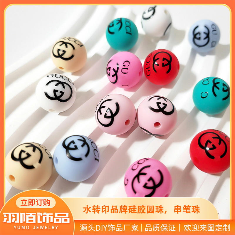 シリコンビーズブランドのボールビーズの水転写印刷カラー円形シリコン歯ゴムビーズのdiyブレスレットの部品