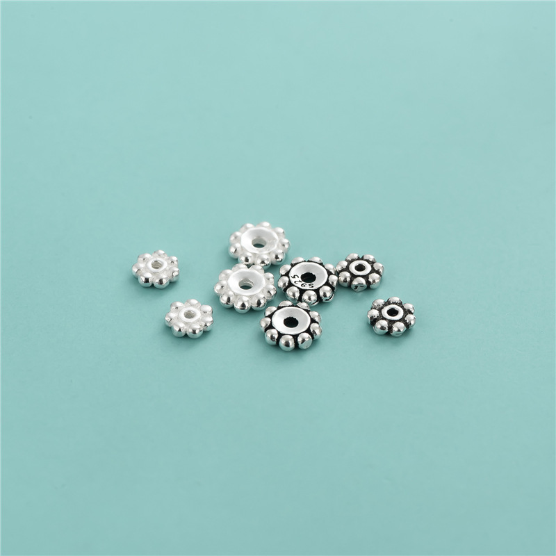 S925純銀泰銀レトロ小花スペーサーDIY手作りビーズ編み紐水晶ブレスレットビーズアクセサリー