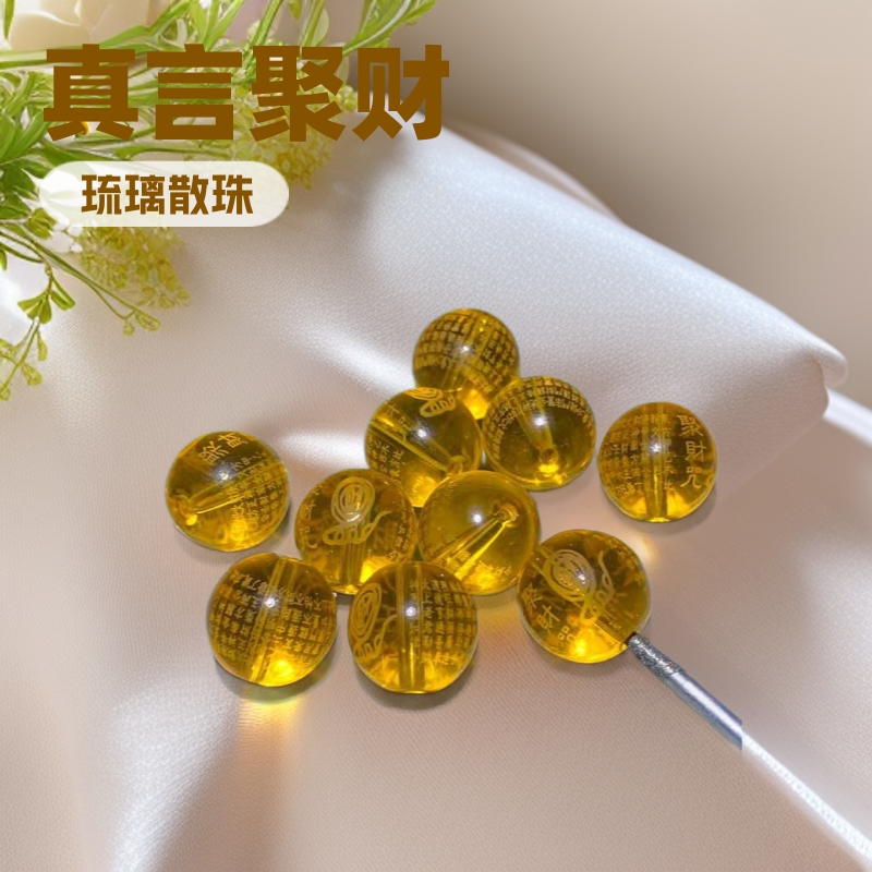 シトリン富の真言ガラスルースビーズラウンドビーズブレスレットアクセサリービーズ DIY ビーズブレスレットアクセサリービーズジュエリー