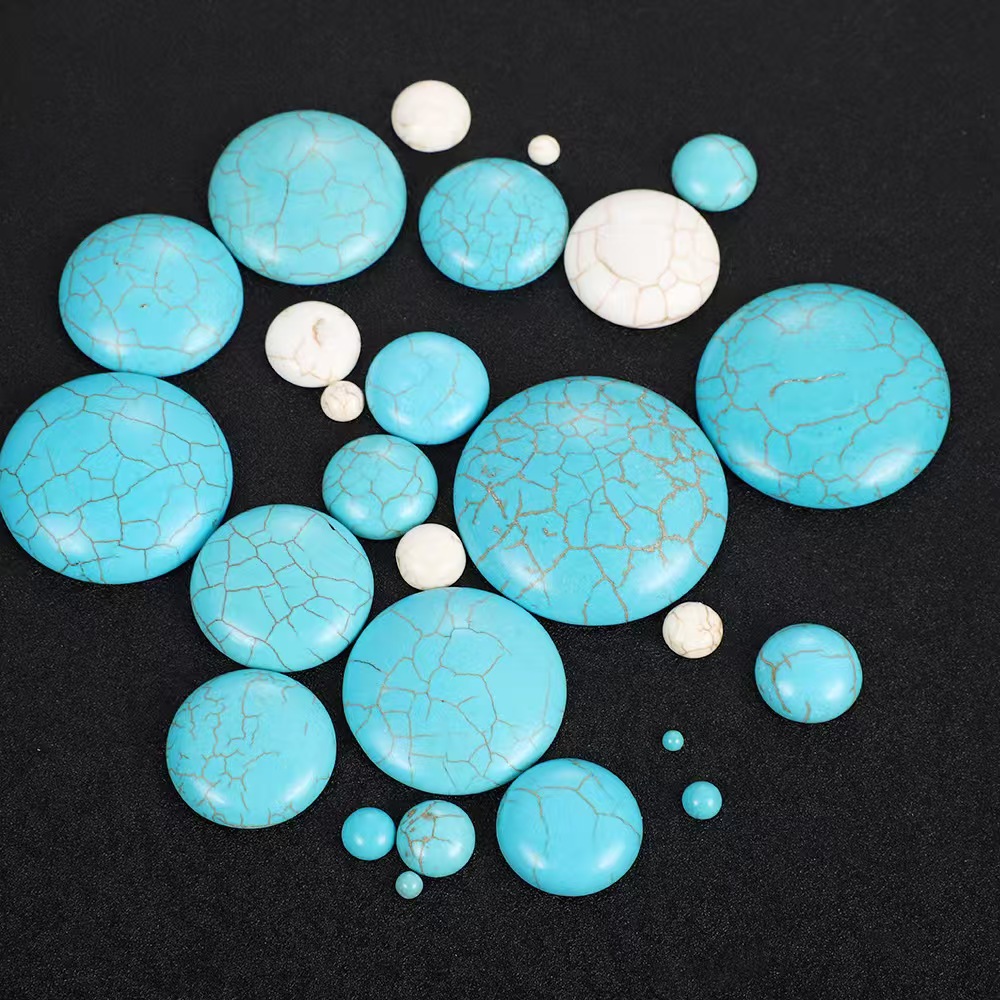 ターコイズラウンド平底リング表面半円ルースビーズチベットエスニックスタイルパッチ宝石象嵌 DIY ジュエリーアクセサリー