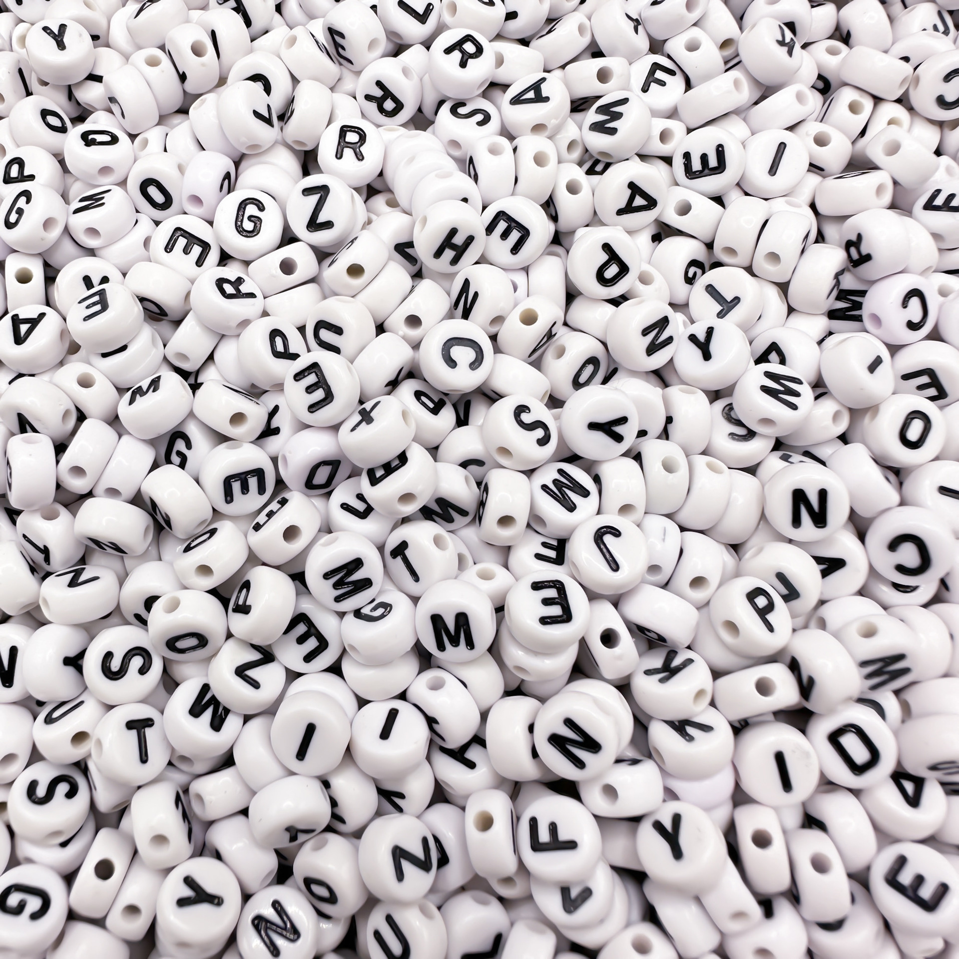 アクリル文字白地黒文字ビーズフラットラウンドビーズ diy ジュエリーブレスレットビーズ作成アクセサリールースビーズ素材