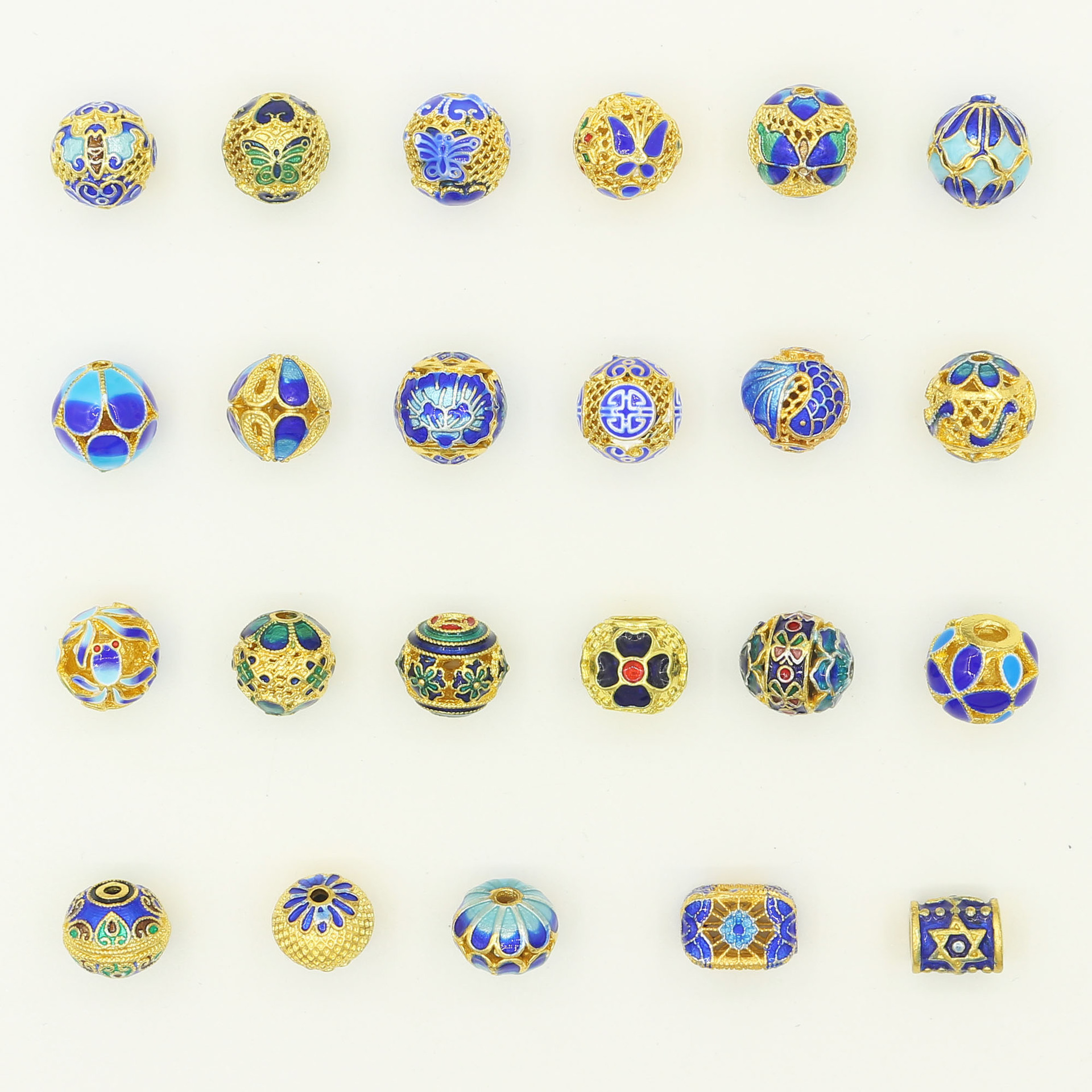 沙金10mm景泰藍透かし玉隔珠焼藍円珠diy数珠ブレスレットネックレスアクセサリー