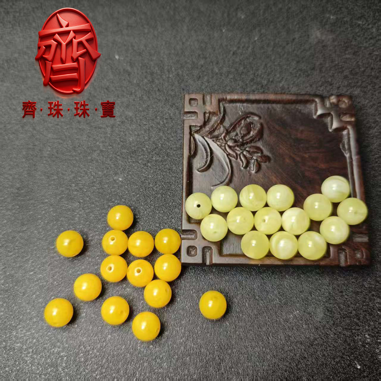 二世代の百花の蜜の丸い玉はばらばらに鶏の油の黄色の手作りのdiyの琥珀の水晶の文はブレスレットのネックレスの装飾品を遊びます。
