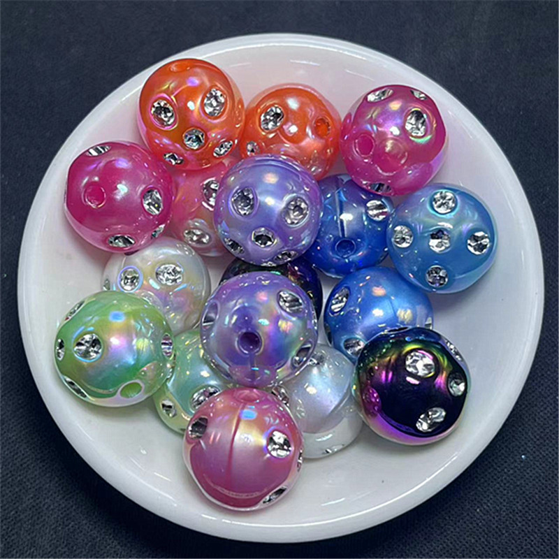16mmアクリルuvメッキ点ドリル面ビーズdiyアクセサリー携帯電話チェーンビーズブレスレットなどの材料卸売り