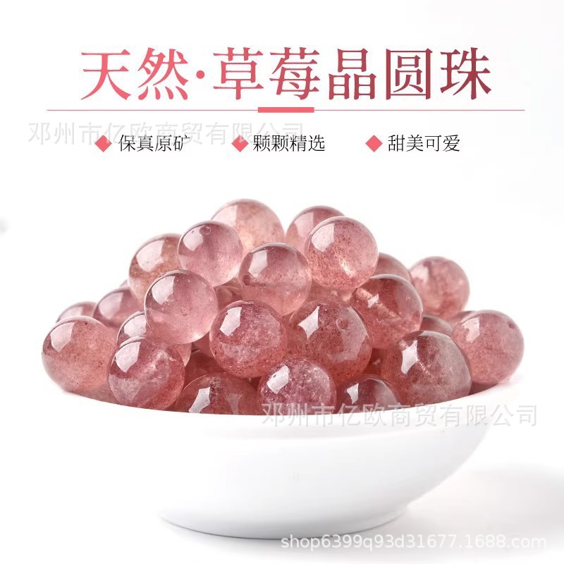 天然いちご晶散珠水晶ブレスレットdiy手作りビーズ材料粉晶手串アクセサリー部品
