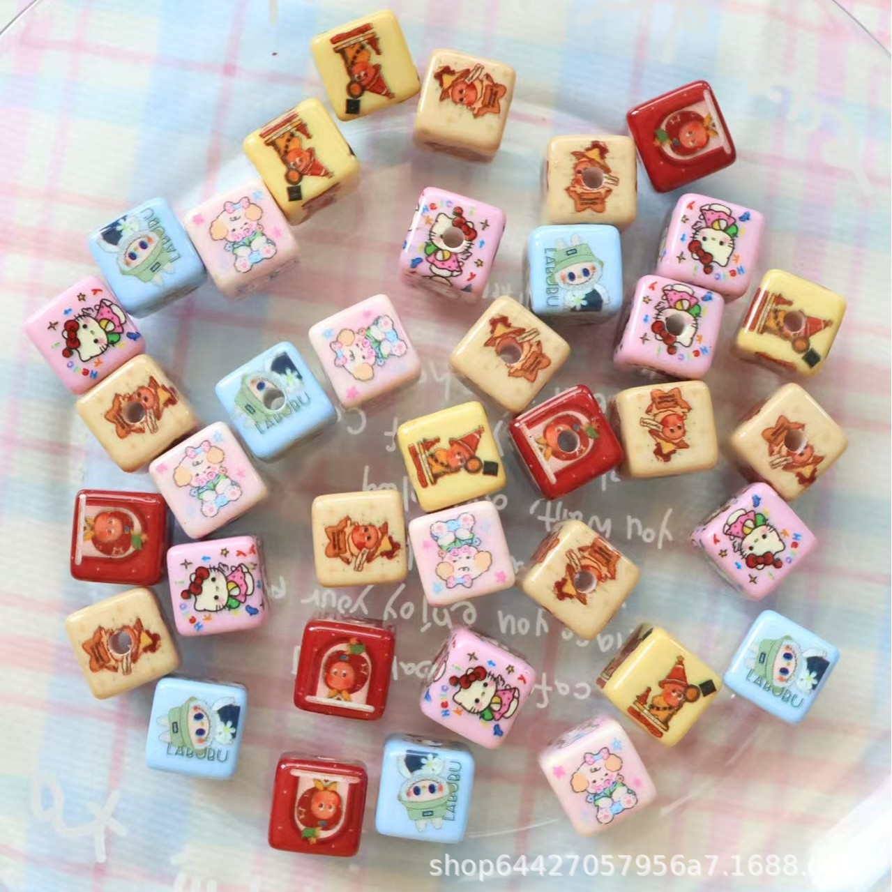 アクリルプリント甘くてかわいいスクエアビーズ diy ブレスレット携帯電話チェーンチェーンルースビーズジュエリーアクセサリー