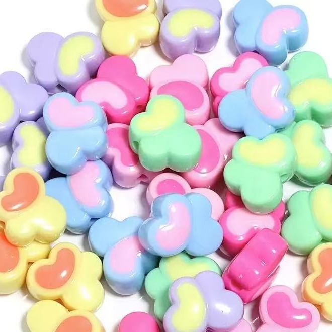 アクリルダブルソリッドカラーバタフライビーズ中ビーズルースビーズ DIY 手作りブレスレット携帯電話チェーンビーズアクセサリー材料