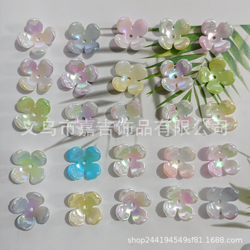 アクリルメッキ模造マペイ四枚花びら中穴クローバー DIY 手作りアンティークヘアアクセサリーペンダントアクセサリー材料