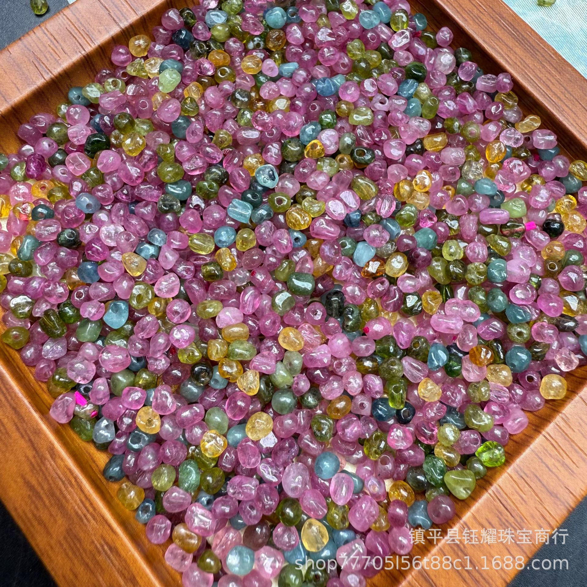 天然鉱物トルマリン、天然石、小さな砂糖粒、砕いた銀、DIYブレスレット、キャンディー、不規則なトルマリンバッチ