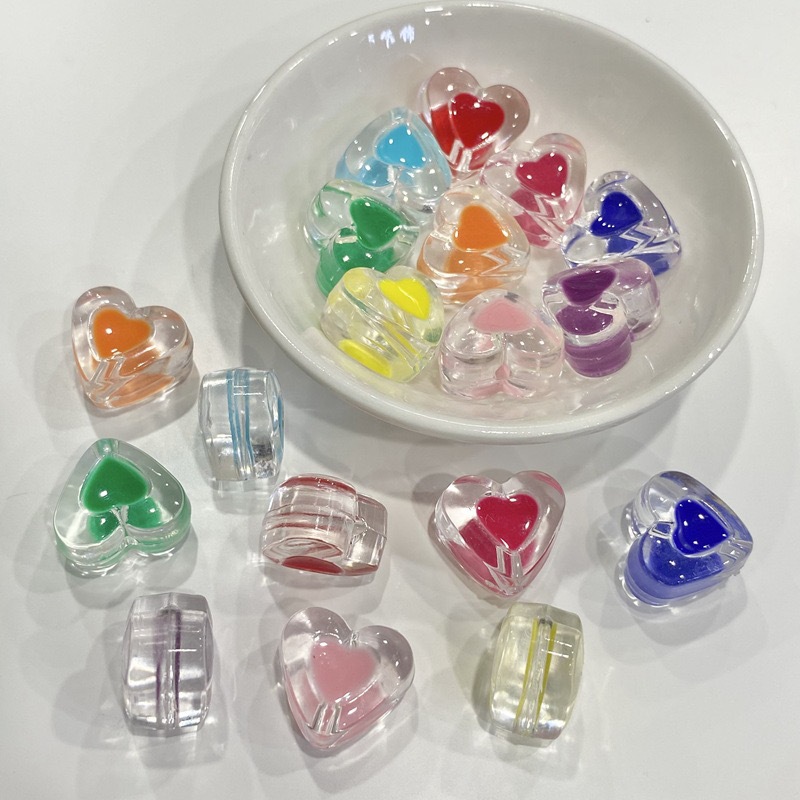 アクリルオイルドリップラブビーズインナーピーチハートシェイプ diy 携帯電話チェーンジュエリーアクセサリービーズルースビーズ