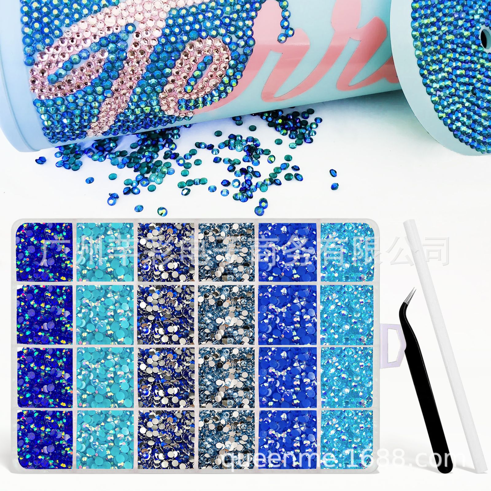 国境を越えて人気abカラー円形ガラス水ドリル銀底美甲ドリル携帯ケース暴力熊貼りドリル