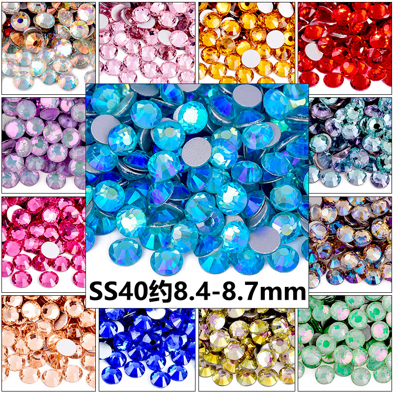 40号 約8.5mm 大型ガラス製平底ラインストーン DIYアクセサリー ネイルアート クリスタル 携帯電話ケース 丸型 フィギュア用ラインストーン