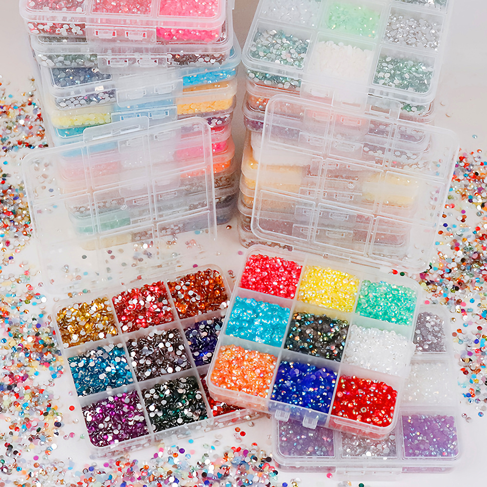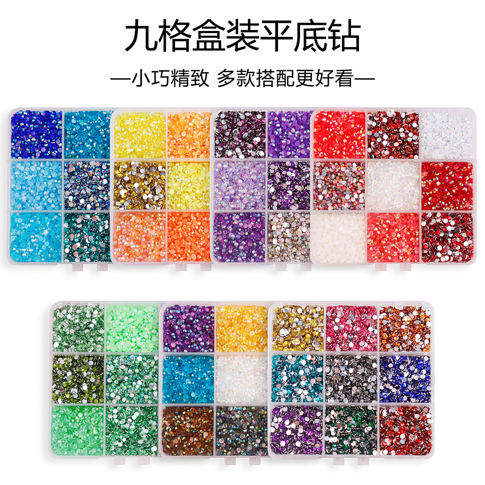 カラフルな 9 グリッド箱入り平底樹脂ダイヤモンド ab ゼリーネイルアート装飾ダイヤモンド diy 電気メッキ暴力的なクマのジュエリーステッカーダイヤモンド