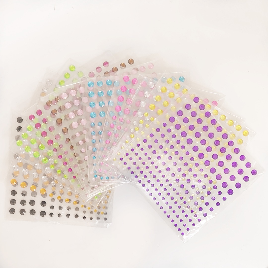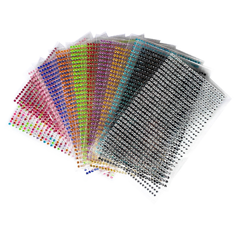 3mm4mm6mmアクリル製フェイスメイクステッカー、車の装飾用ラインストーンステッカー、子供用DIYおもちゃラインストーンステッカー、カラーラインストーン