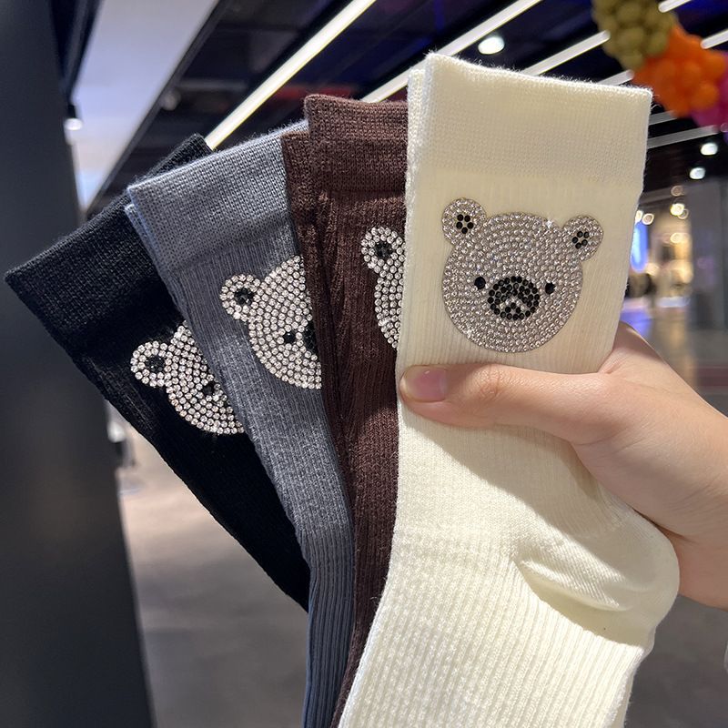 秋冬ファッション装飾欧商品重工水ドリル熊百合insスタック靴下中筒ネット赤起爆靴下
