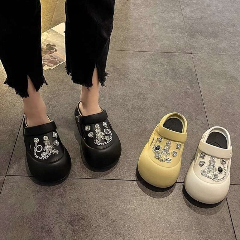ドリルの熊の頭の穴の靴の女性は2025年の夏の新型のファッションを着て滑り止めのサンダルの潮を高めます。