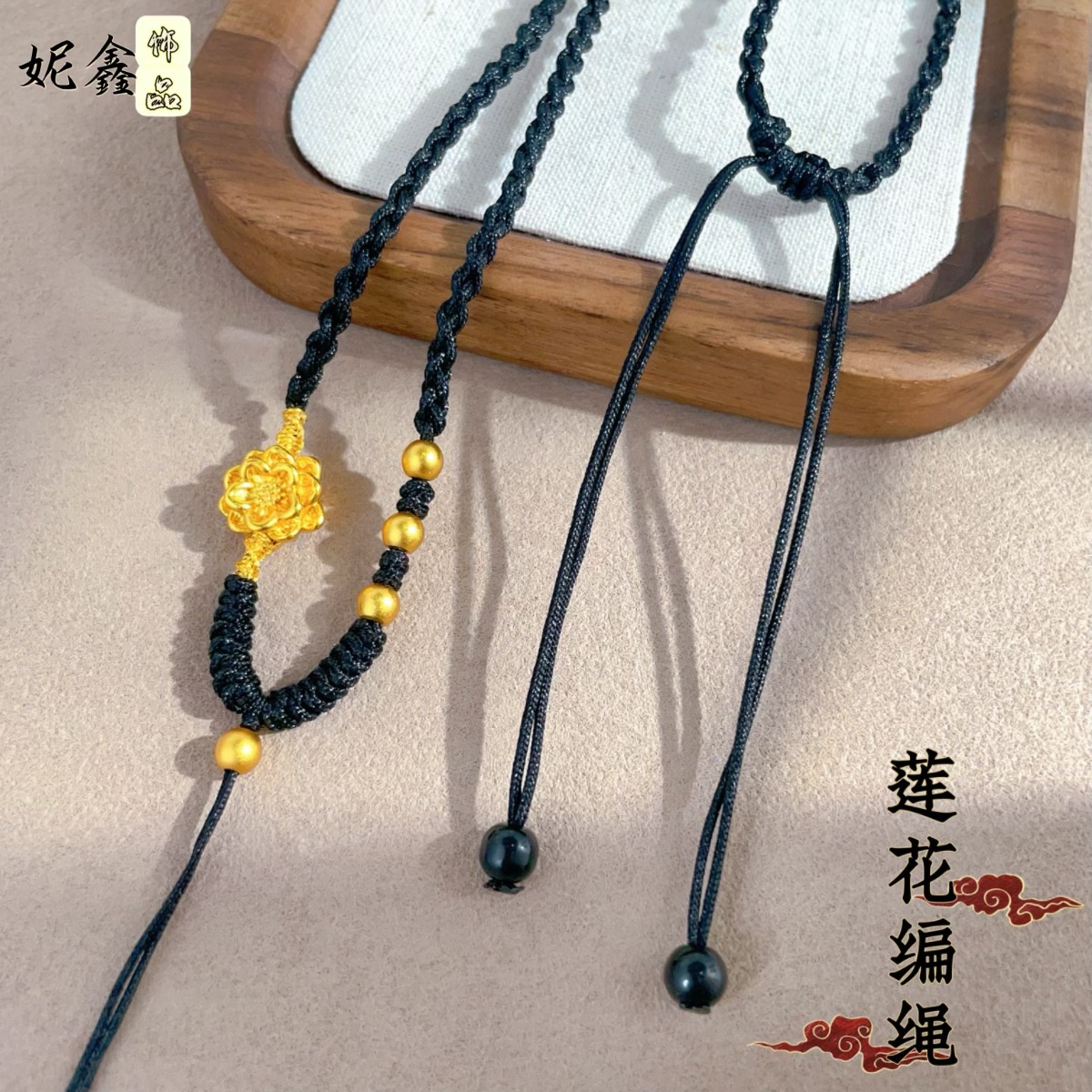 金店の同じシャキンの手編みの蓮の珠のネックレスの紐は女性の金の引き出しの結末のdiyの縄の決まりを調節することができます。