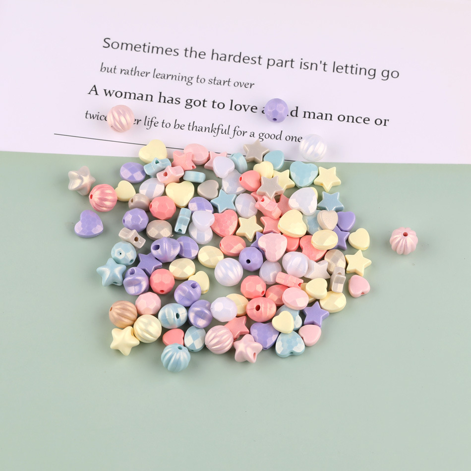 カラー混金クリーム星愛アクリル散珠diy手作り髪飾りストレートビーズアクセサリー