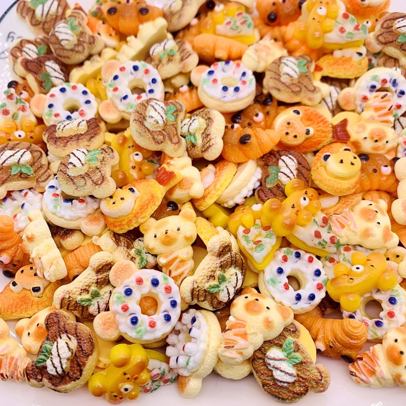 味の熊のパンは食べてクリームのゴムを遊んでアイデアの靴のボタンの材料の樹脂の部品のdiyのアクセサリのヘアピンを飾ります。