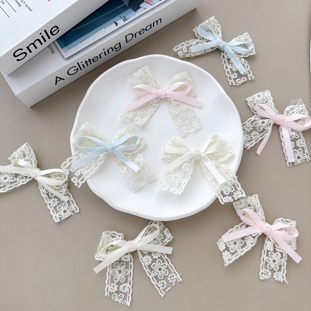 ドーパミン色二重レース真珠蝶結びDIY服装補助材料携帯ケース靴靴下バッグアクセサリー