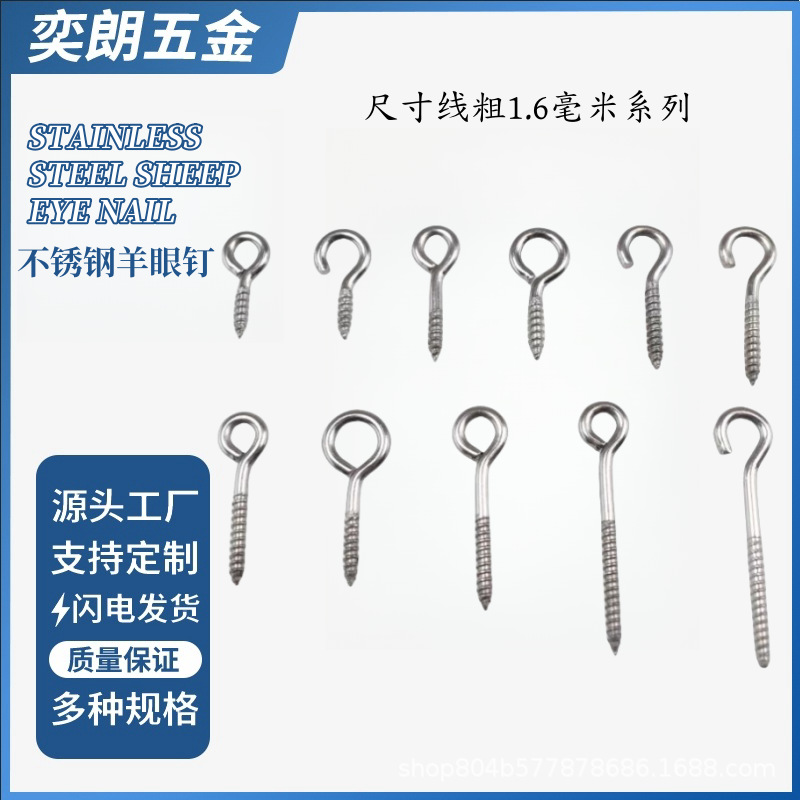 ステンレス鋼1.6線羊アイボルト照明器具吊りリングランプフックdiyアクセサリー自攻羊アイボルト開口疑問符フック