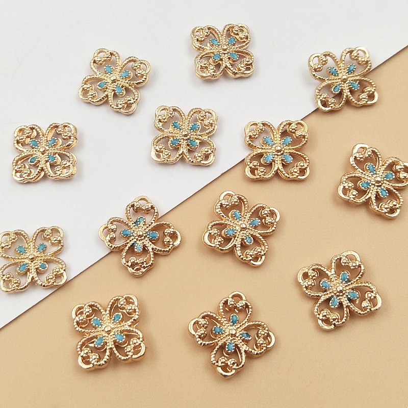 Diyアクセサリーアクセサリー合金滴油四弁花片接続ストラップ古風髪飾りイヤリング材料