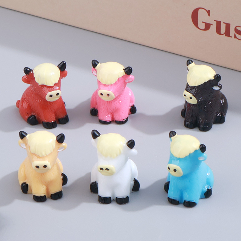 座ってヤクの動物の漫画のデスクトップのコケの小さい景観の装飾の小さい置物のdiy樹脂の部品のアクセサリーの装飾