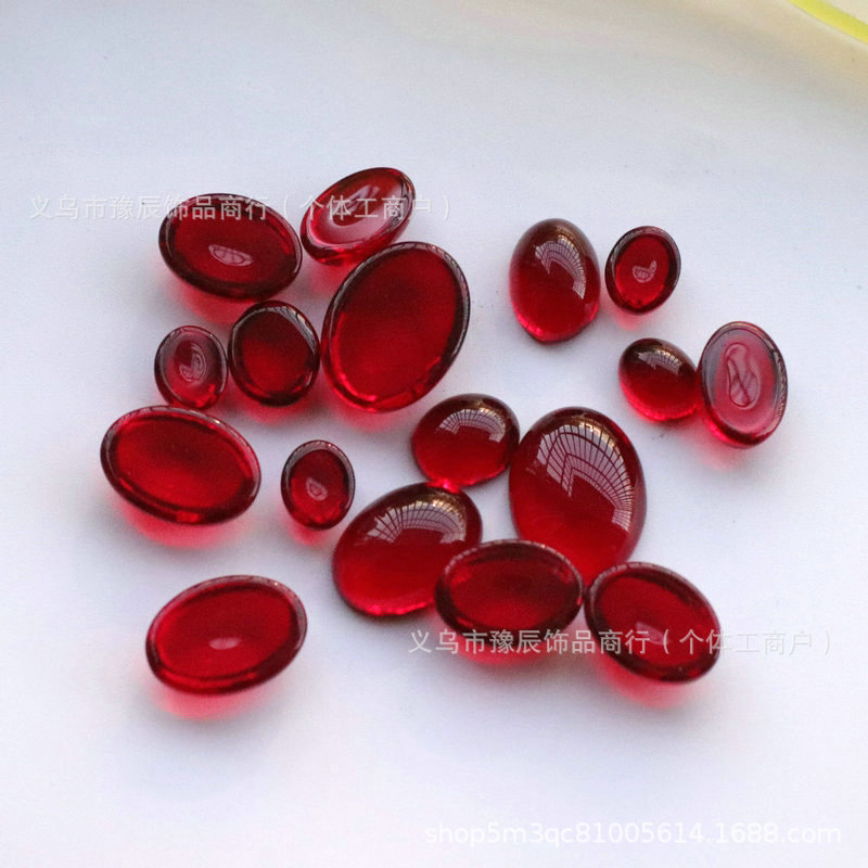 赤瑪瑙水晶ガラス卵形戒面ルビー楕円裸石パッチ手作りdiyアクセサリー材料アクセサリー