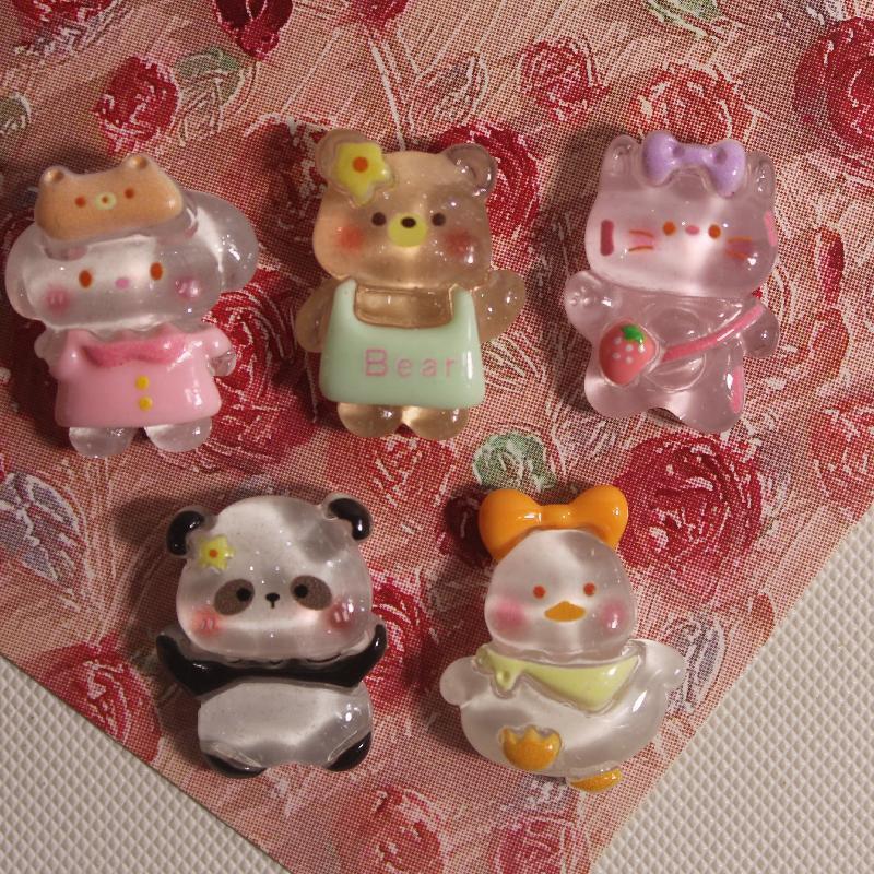 明るい面の漫画の樹脂の小さい部品はパンダのアヒルの子供のヘアピンの髪飾りの材料の収納箱のシールを卸売りします。