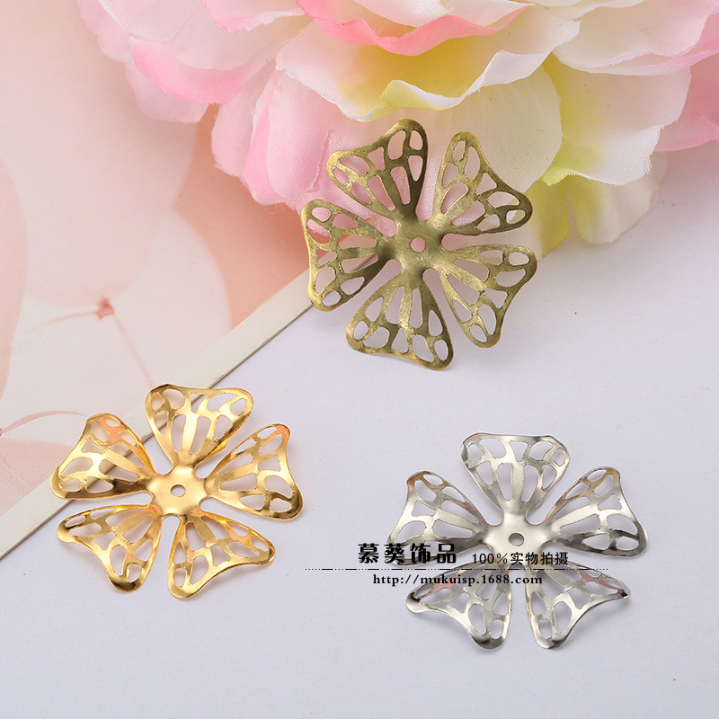 Diyアクセサリーアクセサリー髪飾り材料35mm透かし彫り五弁花金/白k/青銅色