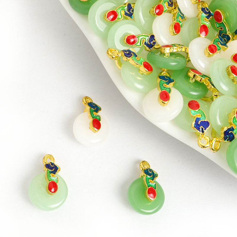 新しい中国風の平安バックルホータン翡翠合金象嵌古代エナメル祥雲ダブルバックル diy ネックレス卸売