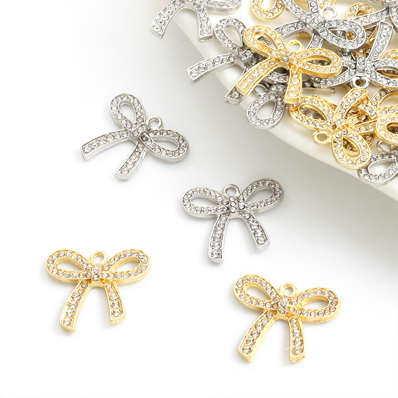 蝶結びのダイヤモンドのペンダントのブレスレットの女性のキーホルダーdiyのペンダントの合金のメッキのアクセサリの部品の工場は卸売りします。