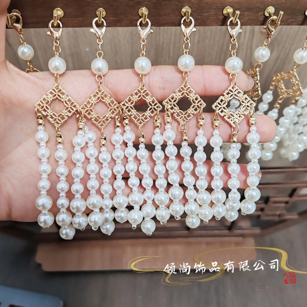 真珠流蘇チェーン半製品古風漢服ヘアピン秀禾団扇補助材料DIY服装アクセサリー