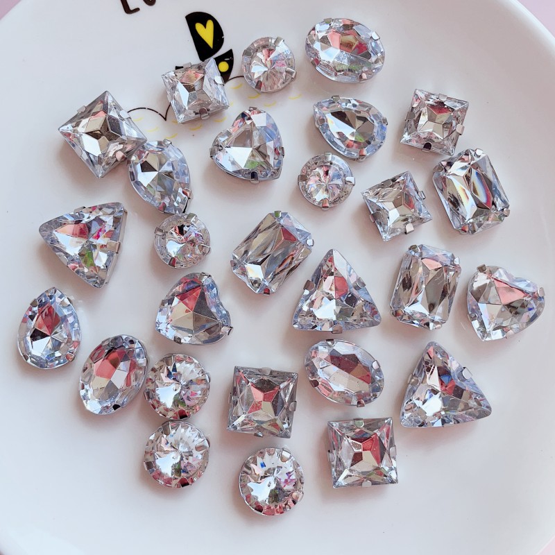 白いアクリル爪ドリル手縫いドリル水滴桃心長方形八角形爪ドリルdiy靴花バッグアクセサリー部品