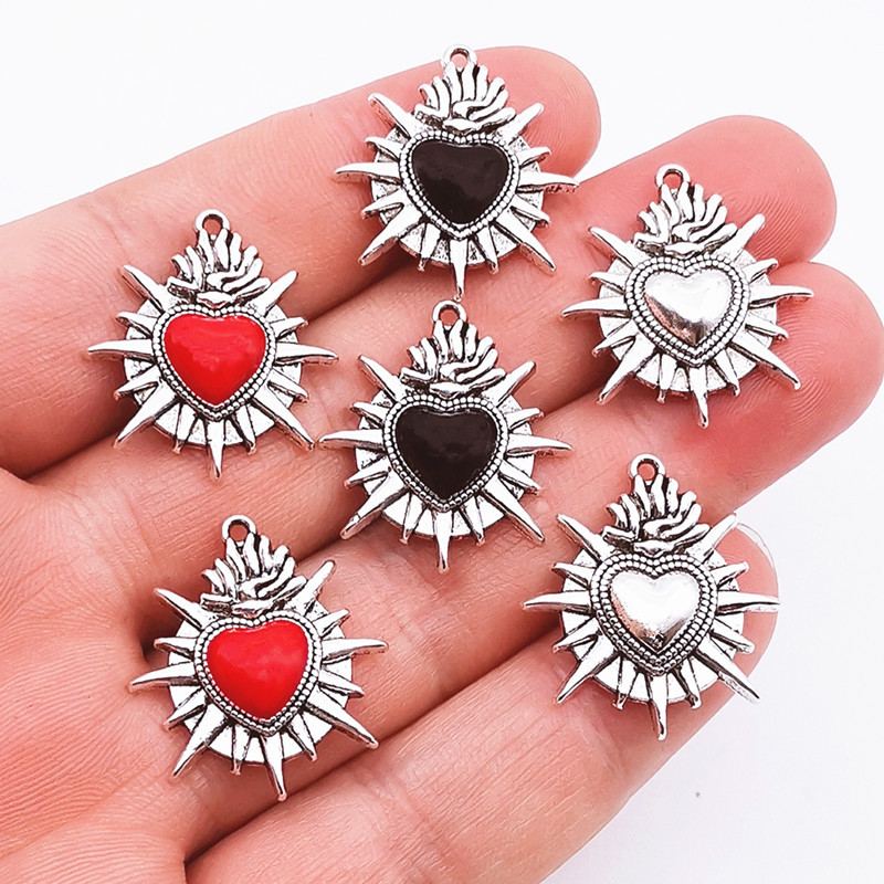 国境を越えてよく売れているレトロな炎の聖心符エナメルいばらの聖心ペンダントDIYアクセサリー部品