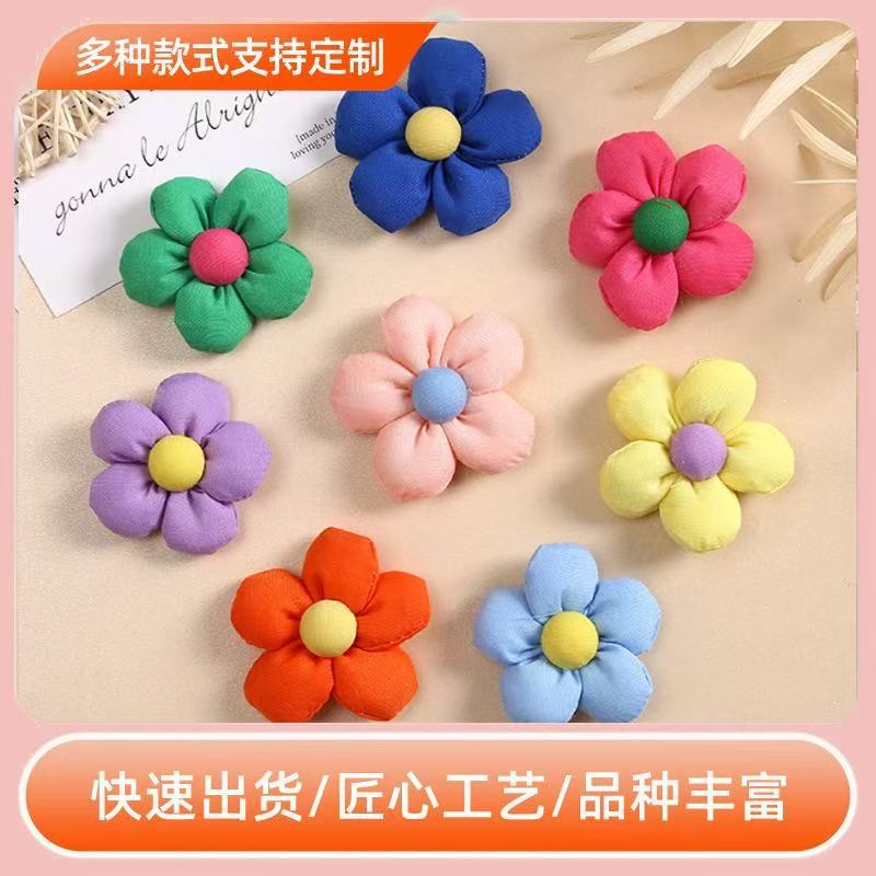 工場直販の新しいカラフルな生地の花 DIY 衣類ブローチ立体五弁花充填綿花