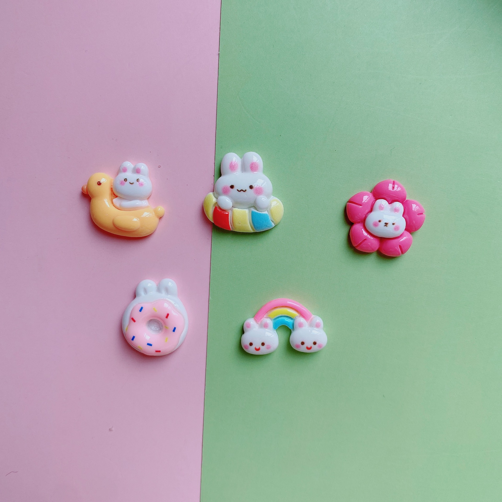 明るい顔の萌え虹のウサギの樹脂の部品は卸売りします。