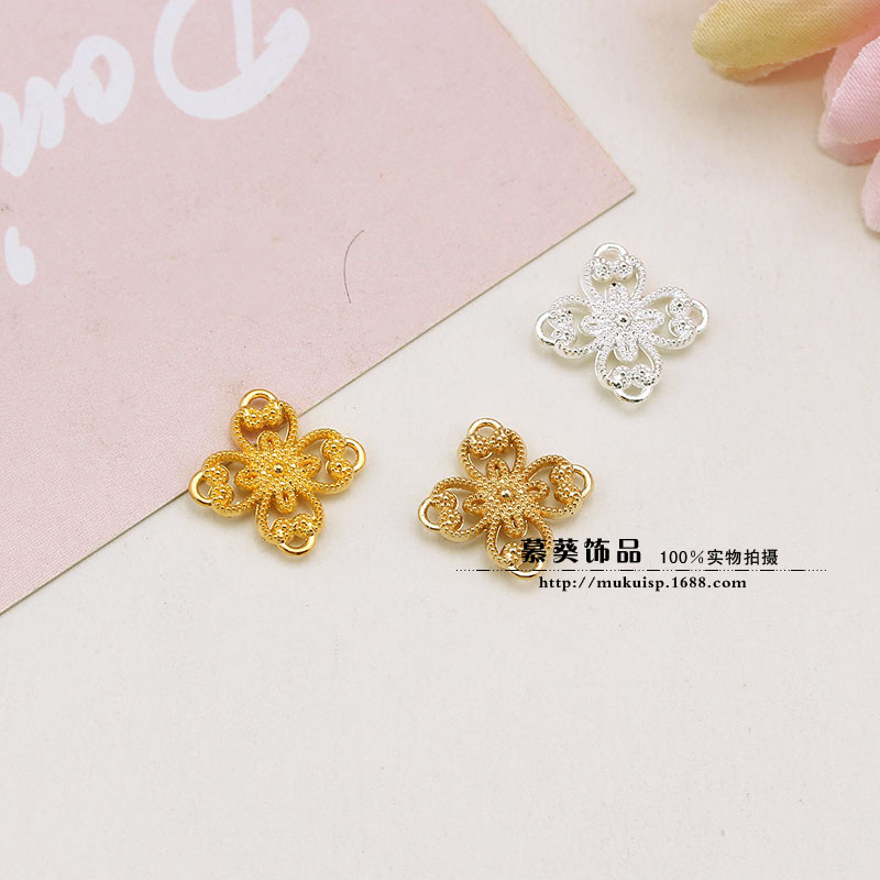 Diyアクセサリー部品12*12mm新合金透かし彫り四葉花金色/銀色/kc金